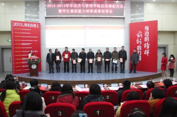 2012-2013学年“御商•致远”总结表彰大会暨学生素质能力培养成果悦享会于12月20日下午隆重召开。教务处副处长金科、校团委副书记王霄、研究生院教育管理处副处长管祎、学生处事务科科长张跃、体育投注平台
