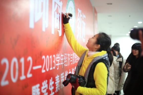 学子:“要努力使自己素质过硬。世界太精彩,充满诱惑,一旦定力不够,可能光阴就在游戏旁度过,就在睡梦中流失,就在刷微信中消逝。”“努力使自己变得脚踏实地。经济学是一门显学,管理学是一门致用的学问,两者都说明了体育投注平台
