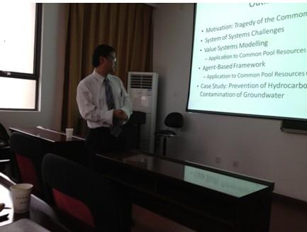 方教授在报告中指出,仿真环境是评估我们对事情发展的理解程度和对新设计的测评的工具。其研究采用系统工程的系统的观点,首要目标是了解参与者的价值观和制定政策来规范自然、人类和工程系统间的相互作用,从而达到社会和环境间的目标。他基于代理框架提出了模拟竞争与合作行为的冲突,指出建模难点在数学抽象思维下参与者的价值体系。此外,每个参与者的行为是需要创造性的,而批判性思维是价值体系反馈的映射结果。代理的模拟行为可以由参与者对寻求监管微系统的预期反应来分析得出。这些结论方便我们设计出新的政策,一般的公共资源问题就能够证明系统建模与仿真框架的适用性。