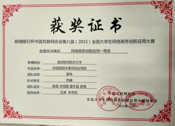 “原味团队”以校园O2O平台为创新点,以“基于互联网+的校园水果电商”项目,在教师王涛、米传民的指导下,利用移动互联网进行线上订单,线下实体开设“水果公社”,打造专业为学生服务的水果健康品牌。一年来,销售额稳步增长,得到了专家评委和企业评委的一致认可,最终取得了全国一等奖的优异成绩。