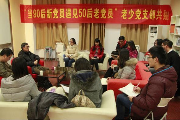 作为老少党支部共建的启动仪式,我们开展了“重走光辉路——重温入党流程”的首场交流活动。邀请皋德仲书记讲述他的入党经历与心路历程,与学生党员们分享了宝贵的人生经验,帮助90后学生建立正确的人生观、价值观、世界观。皋书记和同学们分享了自己1975年入党时的情景,号召同学们不断提升自己的党性,在学生工作、专业学习中都要争做模范,并时刻想着如何帮助身边的同学。皋书记还分享了他在负责离退休党员工作的感受,很多离退休老党员虽然已经从工作岗位上退休,但是依然在生活中以实际行动发挥着党员的模范带头作用。08年汶川地震时,老党员们率先捐款捐物,一些身体原因瘫痪在床的老党员为了支持抗震救灾,让子女用轮椅推着他们去捐款现场;有的党员即使身在国外,还是托人按时交上党费,从未间断过……皋书记通过这些案例勉励年轻的同学们能够像这些老党员学习,用点滴行动践行自己对党组织的热爱。此外,皋书记还就网络舆论、共产党员的宗教信仰等话题和同学们进行了深入细致的交流,动人的故事和皋书记的谆谆教诲都令在场的每一位新党员和入党积极分子获益匪浅。