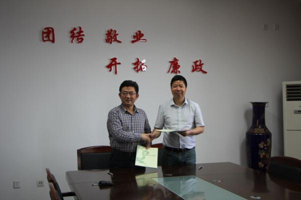 海外院长,院长周德群为他颁发了聘书,并签订了合同书。