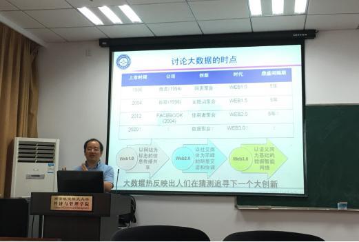余乐安教授在分析技术革命历程和当前时代特征的基础上,首先介绍了影响未来的十大技术,然后从技术发展的角度深入阐述了大数据时代下数据挖掘与分析技术的理论体系,并结合实例讲述了大数据的一些具体应用,接着对大数据技术发展趋势做出预测与展望。最后,余乐安教授与现场师生进行了热烈讨论,耐心解答了师生们提出的问题,报告在轻松愉悦的气氛下圆满结束。