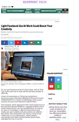 的Jhony Choon Yeong Ng等学者发现,大学毕业生如果感觉自己被困在他们不喜欢的岗位上时就会出现通过使用社交媒体来逃避压抑感的现象。为了规避这种负面效果,有些企业不但禁止了工作场合社交媒体的使用,更设置了惩罚措施。然而,中国学者指出,这种工作场所的社交媒体使用只是大学毕业生的自我心理治疗行为(self-therapeutic behaviors),不应该被视为渎职行为。而且一味地惩罚不会解决大学毕业生的社交媒体使用问题,只会让他们从使用社交媒体转为其他的自我心理治疗行为。 Emerald集团的新闻发布引起了美国媒体Hurrington Post记者的注意,该媒体记者通过email的形式,对黄老师进行了采访,并在美国时间6月7日针对论文做了专题报道:Light Facebook use at work could boost your creativity。(//www.huffingtonpost.com/entry/facebook-use-work_us_57506e44e4b0c3752dccd335)。在介绍了黄博士的研究成果后,报道中指出,为了验证黄老师等人的理论,记者通过社交媒体,针对2,028人展开调研,发现超过一半的人使用社交媒体来进行自我心理治疗。报道还提及,黄老师等人的理论框架受到Ran Zilca在《哈佛商务评论》期刊发表的研究论文的支持。2016年6月8日,全球最大招聘类杂志《The Global Recruiter》在他们的英国与欧洲板块发表评论型文章《Cyberloafing warning: Graduates in the wrong job use ‘avoidance strategies’》,对黄博士的研究发现做了介绍(详见//www.theglobalrecruiter.com/news/graduates-in-the-wrong-job-use-avoidance-strategies/7463)。 体育投注平台