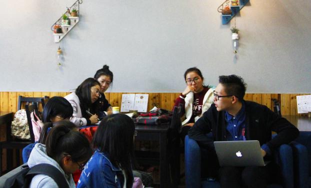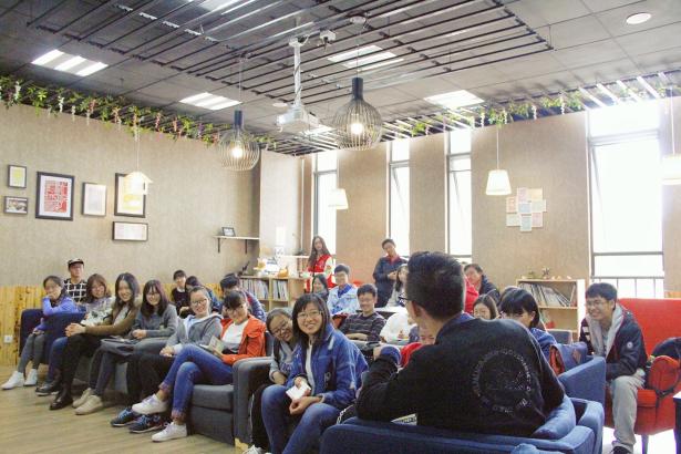 在W&M咖啡馆举办“小微平台”悦享会, 2016级所有班长团支书和有意申报小微平台的同学参加了本次悦享会,由2015年小微平台优秀项目“经致工作坊”负责人周家旺主讲。