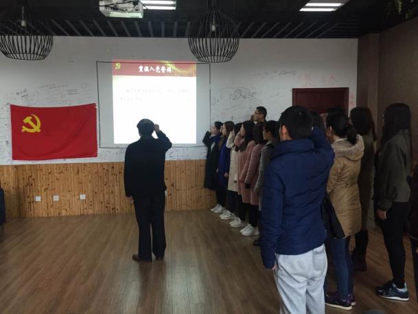 最后,站在鲜红的党旗面前,再一次举起右手,在老书记的领读下,所有党员同学一起重温了入党誓词,重温了当年的决心和信念,“我志愿加入中国共产党,拥护党的纲领,遵守党的章程…”,入党誓词的十二句话,句句千钧,这不仅是一种形式,更是一种激励,一种鞭策,希望党员同学们能够“登高望远,脚踏实地”,在未来的工作岗位上绽放独特的党员风采和智慧光芒。