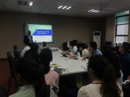 在4月19日下午的报告中,Badr副教授结合自己的研究课题讲述了大数据分析的常用技术及主要流程。他首先阐述了大数据所需的数据存储方式及其发展演变,还有不同类型数据库的区别;随后,介绍了数据分析的一般流程及注意事项,并重点介绍了大数据在商业智能方面的应用及注意事项;最后,着重强调了数据准备的重要性,提示要反复确认数据的正确性才能进行后续的研究。