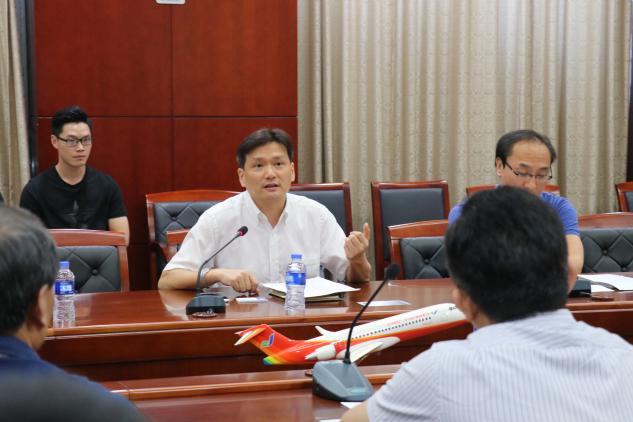 7月12日上午,调研团到达中国商飞上海飞机客户服务有限公司,人力资源部部长、党支部书记钟庆,人力资源部助理杨文邱,飞行训练部部长、体育投注平台