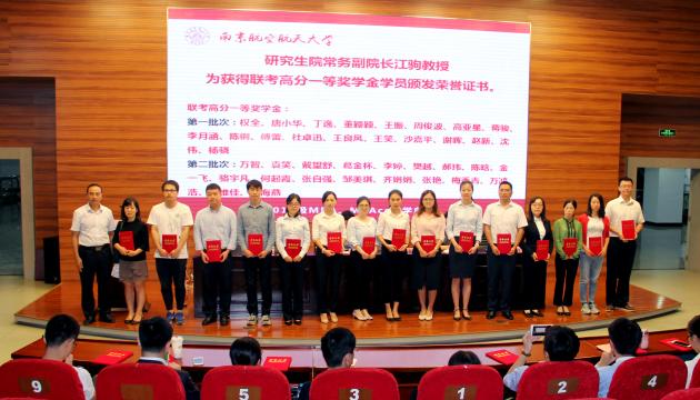 研究生院常务副院长江驹教授为获奖学员颁发荣誉证书