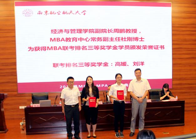 教育培训中心(MBA、MPAcc教育中心)执行主任杜刚博士分别为获得奖学金的学生颁发证书并合影留念。