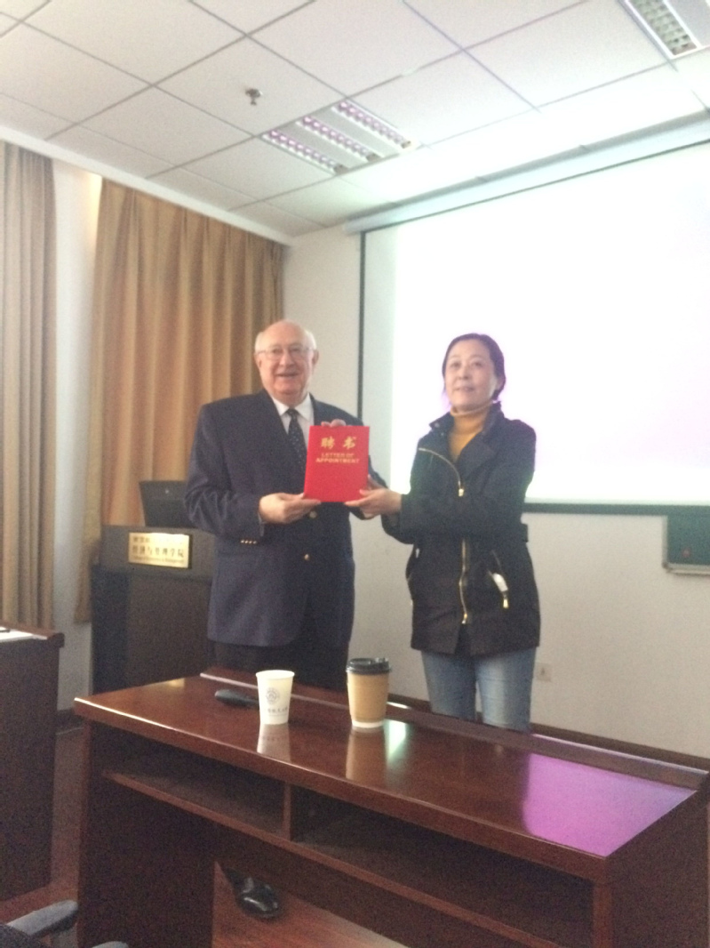 Benjamin Lev教授首先对自己的学术背景以及OMEGA期刊的基本情况、影响因子、论文数量和审稿过程进行了介绍。随后,Benjamin Lev教授从学术论文的题目、摘要、关键词、算例、结论、参考文献等几方面详细介绍了学术论文撰写及投稿过程中的注意事项。最后,徐海燕教授代表体育投注平台 为Benjamin Lev教授颁发了兼职教授聘书。此次学术交流活动为广大师生带来了启发,受到在场师生的热烈欢迎,也扩宽了体育投注平台 师生的国际化视野。