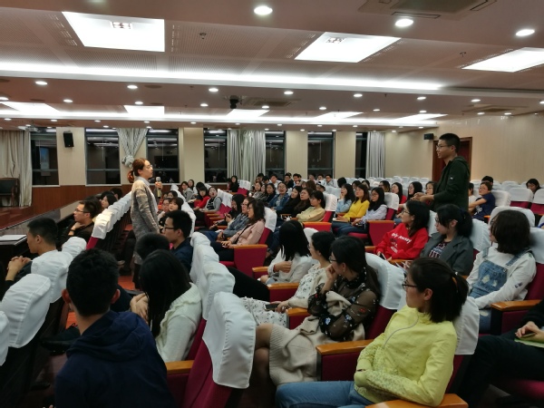 首先,袁颖老师向同学们介绍了目前的社会就业形势以及体育投注平台 2018届研究生就业的具体情况。尽管当前受社会政治经济等方面的多重影响,高校毕业生就业竞争激烈,但在体育投注平台 和同学们自身的努力下,截至2018年4月,体育投注平台 2018届研究生就业率达到了90%,国防就业、世界500强和升学率都有所提升。