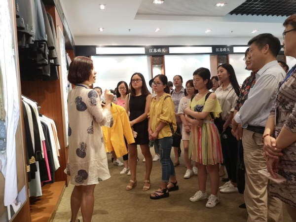 国际经济与贸易专业负责人江可申老师,2015级本科生辅导员田苑娜带领38名本科生,6名研究生前往南京舜天西服有限公司进行参观交流。