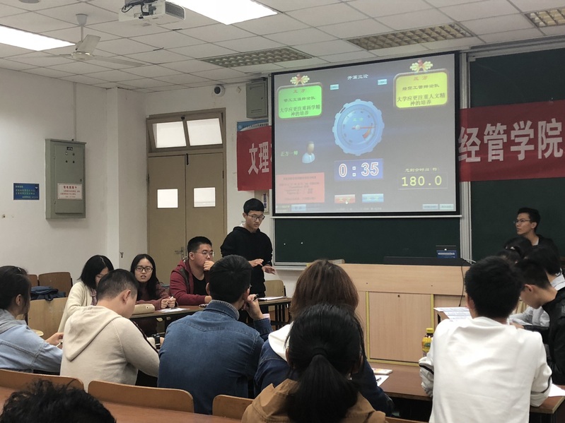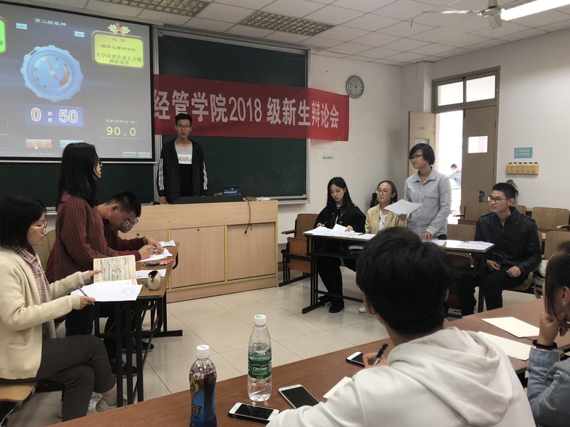 在随后进行的自由辩论环节中,双方从容地表述自己的观点,加上生动的肢体语言,积极表现自我,就辩题展开更深层次的辩论,妙语连珠的辩论一次次将此次思辨会推向高潮。赛后,评委对本次比赛做了点评,充分肯定了双方选手在辩论时的优秀表现,同时也提出了在辩论内容、辩论形体方面的不足之处,希望大家能够加以改进,提高辩论水平。