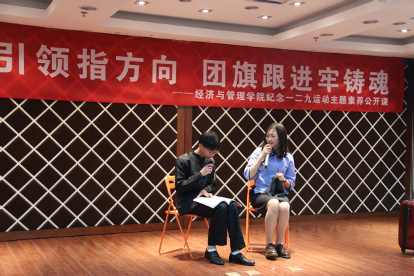 12月7日晚,体育投注平台 “党旗引领指方向,团旗跟进牢铸魂”纪念“一二·九”运动主题素养公开课在体育投注平台 A0305报告厅成功举办。体育投注平台 党委书记焦宏图、经济系教授江可申、校团委副书记董羽、体育投注平台 团委书记庞依达、各年级辅导员和各级团学骨干近两百人共同参加了此次活动。