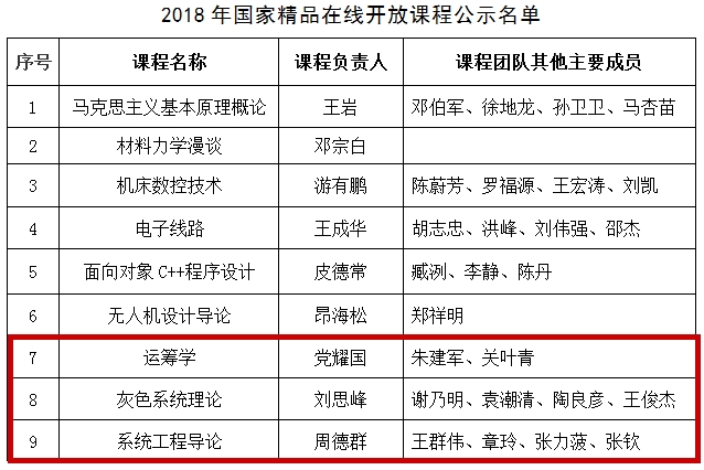 4.《灰色系统理论》、《运筹学》、《系统工程导论》被评为2018年度国家精品在线开放课程。