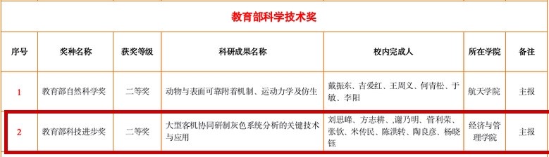 2. 刘思峰教授团队“本土原创学说引领的管理定量方法课程群建设与教学改革”获国家教学成果二等奖。