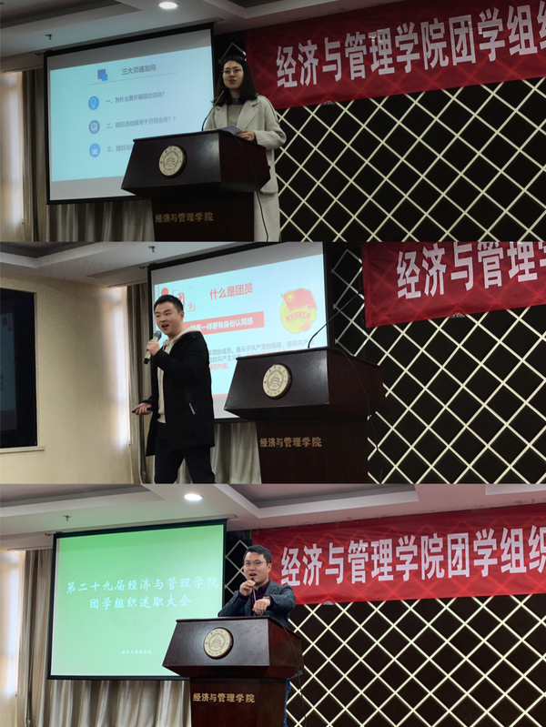 首先,体育投注平台 团委、学生会、科协、青协等四个团学组织的学生骨干进行了工作述职,并分享了本学期的工作计划。团委副书记余晓妍以“让我留在你身边”为主题,从组织建设、社会实践、思想引领三个维度分享了团委这一年来所取得的成果,并对下一阶段的青马工程、五四评优等工作进行了讲解;学生会主席张秋香阐述了学生会在内部改革、活动开展、权益服务、宣传交流等方面的工作足迹,也对工作中出现的问题进行了总结和反思;科协副主席邱毓婷回顾了组织创新创业类竞赛、开展创新创业类培训等工作的内容,本学期讲继续以建设服务型部门作为工作重点,弘扬“大众创业、万众创新”的时代精神;青协主席李姝萱与大家分享了青协下属部门的珍贵瞬间,汇报了各个志愿服务项目的运营情况,本学期将着力围绕品牌建设、团队内训等开展工作,传播体育投注平台 学子的爱与温暖。