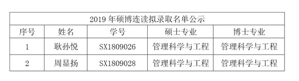 经过体育投注平台 考核小组对申请学生的课程和科研能力考核,拟录取以下2位同学硕博连读,特此公示。