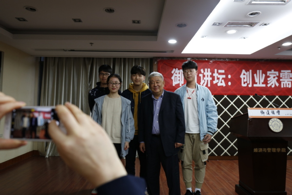 江宝全先生引用了许多企业管理过程中的实例,向同学们展示了公司运营的实际情况,其提出的“抢喜糖理论”、“鱼塘理论”等用通俗易懂的语言为同学们描述了企业管理的理论经验,让同学们与企业管理“零距离”、与行业大家“面对面”。活动结束后,到场学生仍意犹未尽,争相与江先生合影留念。