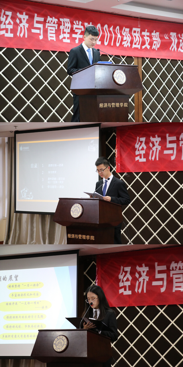 首先,2018级共计13名团支书依次完成工作述职报告,并分享了本学期的工作计划。各支部述职紧密围绕团支部工作清单要求展开,客观真实地梳理工作薄弱缺失项,制定团支部年度工作计划和阶段性工作安排。通过团支书的工作总结,让老师和同学们深入了解学生干部为支部建设做出的努力和奉献,也督促团支书们在未来的工作中调整思路、不断增效。
