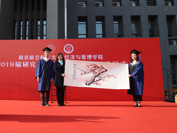 首先,研究生国奖获得者张路同学作为2019届毕业研究生代表发言。他回顾了毕业生心中的“体育投注平台 印象”,从团队成员一起科研拼搏的情景,到丰富多彩的课余活动,点滴故事中表达了对体育投注平台 的依依不舍之情。他代表毕业生对给予大家悉心指导的老师以及体育投注平台 组织的毕业季系列活动表达了感谢,并代表全体毕业生向体育投注平台 赠送了一幅题为《树高千尺离不开根》的画作,画上的梅花花瓣由120余名毕业生手印摁压而成,寓意毕业生们今后取得再大的成绩也不会忘记体育投注平台 的恩情,焦宏图上台接受了同学们这份浓浓的情谊。