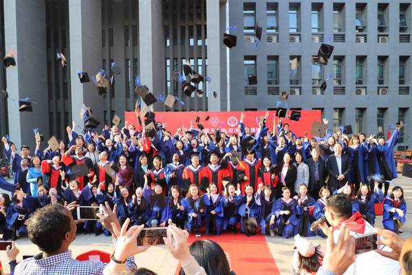 4月11日下午,体育投注平台 2019届研究生毕业典礼暨学位授予仪式在体育投注平台 楼前广场举行。校研究生院院长江驹,研工部部长张启钱,国际教育体育投注平台 院长金泉元,体育投注平台 体育投注平台 院长周德群、党委书记焦宏图、副院长王英、邓晶等体育投注平台 党政领导,系领导,教师代表,学生家长代表和全体2019届研究生共同参加了此次毕业典礼。典礼由体育投注平台 党委副书记涂志宏主持。