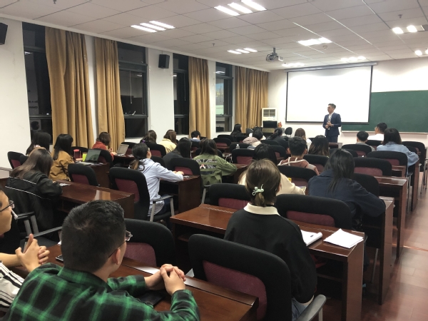 暑期实习是提升自身专业技能的重要途径,也是未来找工作的“敲门砖”和“垫脚石”。为了帮助同学们提高实习成功率,4月15日,体育投注平台 邀请刺猬实习大客户经理笑笑、汇丰银行高级客户经理Ham、A.O.史密斯HR马倩倩共同举行“经赢职场:如何找到一份优质实习”专场培训,2016级辅导员朱一豪和部分学生参加了本次活动。