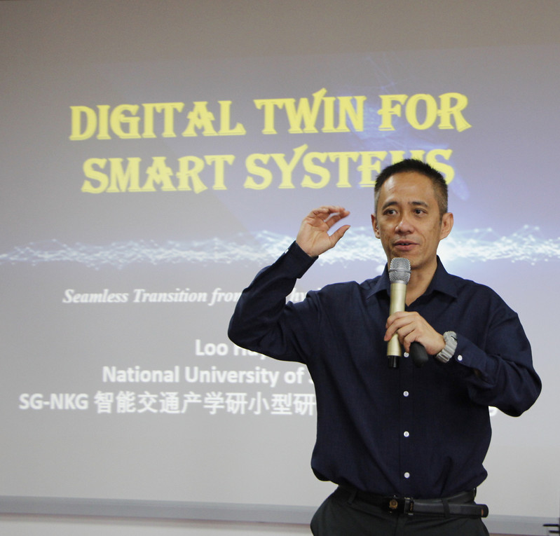 第一位报告人是来自新加坡国立大学的Lee Loo Hay教授,他毕业于哈佛大学,是IEEE TAC,IISE,IEEE TASE等国际知名期刊副主编,也是新加坡国立大学“新一代物流研究中心”负责人。Lee教授分享了他们团队自主设计和运营的“数字孪生”仿真优化平台,指出“通过仿真数据预测未来、优化决策是新一代物流系统的一种重要发展趋势”。