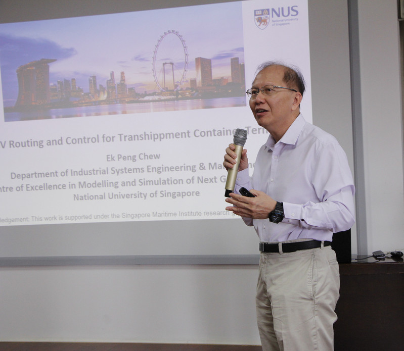 举行,应邀出席此次研讨会的校外嘉宾有新加坡国立大学Lee Loo Hay教授、Chew Ek Peng教授、同济大学梁哲教授、大连海事大学孙卓教授、新一代港口研究中心李浩斌老师。