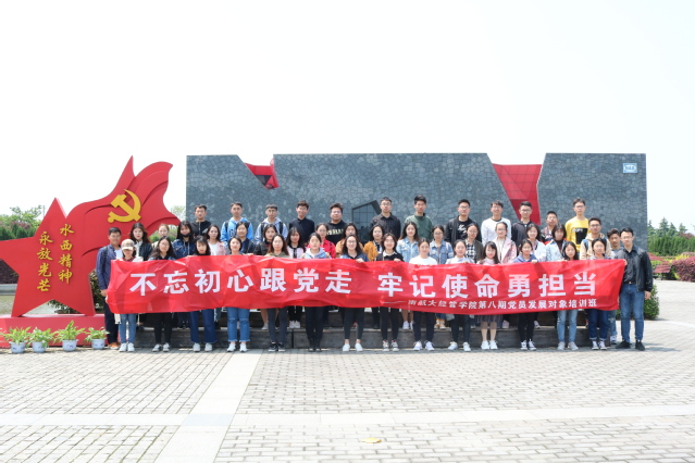 4月27日,体育投注平台 开展“不忘初心跟党走,牢记使命勇担当”主题二级党校培训课程暨青马工程团日活动,70余名党员发展对象、青马工程培训班学员前往体育投注平台 天目湖校区、新四军江南指挥部纪念馆参观学习,了解体育投注平台 发展、追忆革命先烈,辅导员康冲、朱一豪一同参加了本次活动。