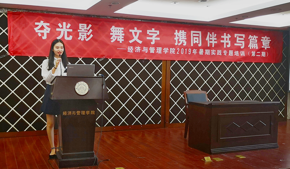 6月12号下午,"夺光影 舞文字 携同伴书写篇章"体育投注平台 第二期暑期社会实践专题培训在体育投注平台 楼A0305报告厅顺利举办。体育投注平台 宣传员时云、2016级辅导员朱一豪、院新媒体中心邵丹惠分别就摄影摄像、团队运营和新闻撰写开展了专题培训,体育投注平台 团委书记庞依达和近两百余名社会实践项目负责人参加此次培训。