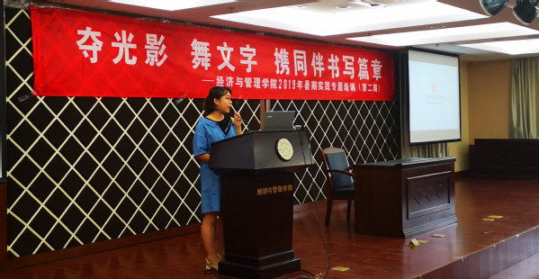 时云从新闻摄影的特点、新闻摄影的构图、手机常用的拍摄功能、手机拍摄的后期制作、分类举例五个方面着手,为同学们细致讲解了如何拍出"真、好、美"的照片。培训过程中,她根据实践团队所属的不同实践类别,对其拍摄要求做了一一讲解。时云给出了很多具体建议,如“不同的项目类别采取不用的拍摄方式,例如支教类的项目最常采用特写或中景拍摄,这样能细致反映出学生的面部特征。”激发了各个项目对项目运营记录的深入思考。