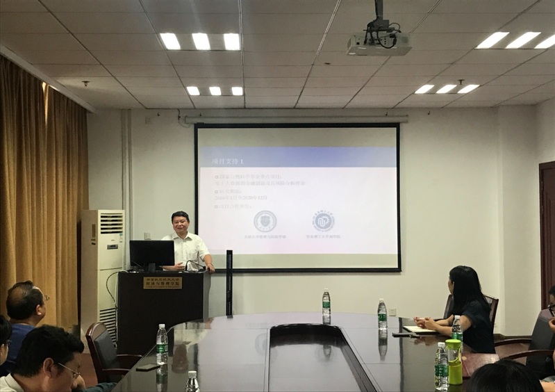 2019年6月15日下午,天津大学教授熊熊应体育投注平台 金融研究所邀请,在体育投注平台 将军路校区体育投注平台 706做了题为“大涨大跌时期股指期货市场投资者活跃程度与关注度的研究”的讲座。体育投注平台 副院长王英、副院长王群伟、经济系主任袁潮清、副主任王建立、肖龙阶、苏飞等教师及部分硕、博研究生现场聆听了教授熊熊的报告,本次报告由副院长王英主持。