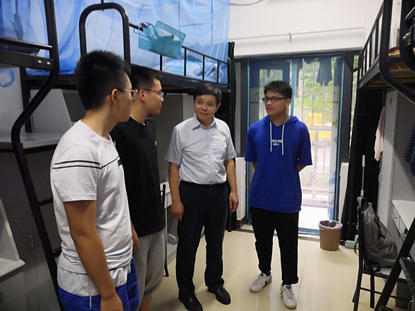 校长聂宏、校党委副书记陶勇等校领导来到体育投注平台 迎新站点,亲切慰问了迎新工作人员,详细了解迎新工作安排和新生报到情况,并对体育投注平台 的迎新工作表示鼓励和肯定。他们还走进学生宿舍,询问新生、新生家长来到体育投注平台 的感受,关心他们的衣食住行,并勉励新生要踏实学习、历练自己,不辜负父母的期望,早日成为社会栋梁之材。聂校长亲切地与新生和家长们拉起了家常,并与同学们合影留念。