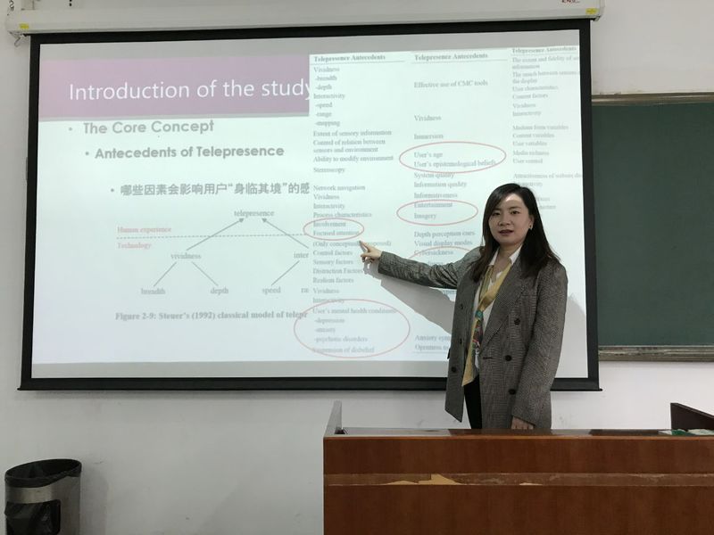 10月14日上午,南开大学商体育投注平台 信息资源管理系讲师张丹老师应体育投注平台 信息管理与电子商务研究所邀请,在体育投注平台 704会议室作了题为“虚拟环境中用户‘身临其境’感觉的探索性研究”的精彩学术报告。报告由讲师肖琳主持,副教授宋连莲、讲师刘文龙等老师及部分硕士、博士研究生参加了本次学术讲座。