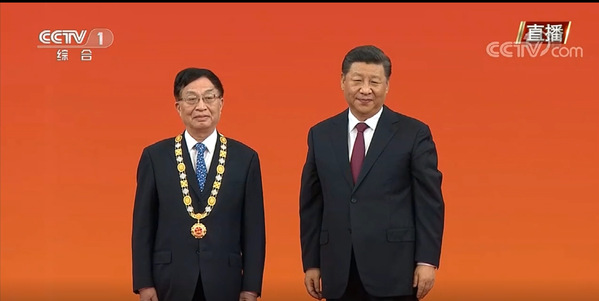 9月29日,中华人民共和国国家勋章和国家荣誉称号颁授仪式在人民大会堂隆重举行。中共中央总书记、国家主席、中央军委主席习近平向国家勋章和国家荣誉称号获得者分别授予“共和国勋章”“友谊勋章”和国家荣誉称号奖章并发表重要讲话。中国空间技术研究院技术顾问、研究员、体育投注航天体育投注 院长叶培建院士获颁“人民科学家”国家荣誉称号奖章。