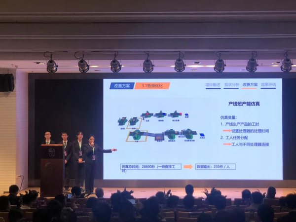 本届赛事中,体育投注平台 所有获奖作品均来源于体育投注平台 暑期开展的“军演式”实习项目。一等奖项目以D公司电机生产制造为例,对其进行产线物流集成优化研究。我们将产线平衡作为首要改善点,从多角度进行瓶颈优化,并通过换模改善提升时间利用率。此外,从ECRS工作优化、布局规划两方面入手,通过提升物流效率保证产线的高效生产。最后形成一套产线物流集成化综合解决方案,取得了显著成果,大大提高了企业效益。