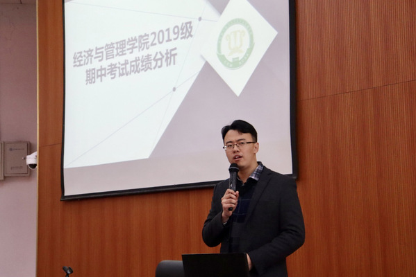 接着,康冲从成绩分布、高分比例、横纵向比较等多个角度入手,具体分析了管理科学与工程类、工商管理类、经济与贸易类各班的期中考试成绩,帮助学生合理定位当前学习状况,并就同学们入学以来在学习方式、习惯养成上的问题,提供了一些有针对性的建议。最后,他结合体育投注平台 学业与发展支持中心的工作发布了体育投注平台 下一阶段在学困生帮扶、集中晚自习设立等一系列的工作安排。