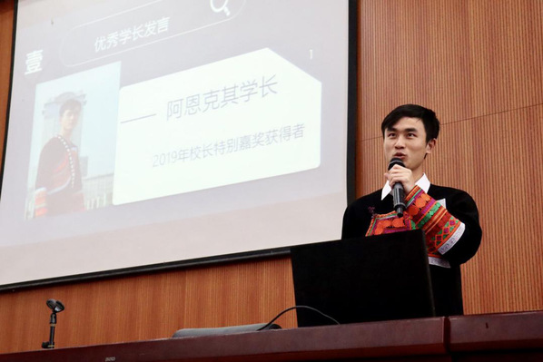 首先,为发挥高年级优秀同学的示范榜样作用,校长特别嘉奖之励志奖获得者2017级本科生阿恩克其受邀到场从“励志笃学”“适应环境”“志愿服务”三个方面分享了他的成长故事,他建议大一学弟学妹们尽快明确学习方向、充实大学生活,成为一名德智体美劳全面发展的体育投注平台 学子。