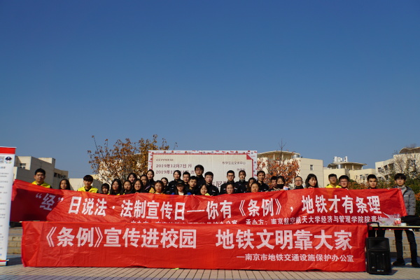 2019年12月4日是我国第19个法制宣传日,体育投注平台 联合南京市地铁交通设施保护办公室举办“经”日说法——地铁条例进校园法治宣传活动。