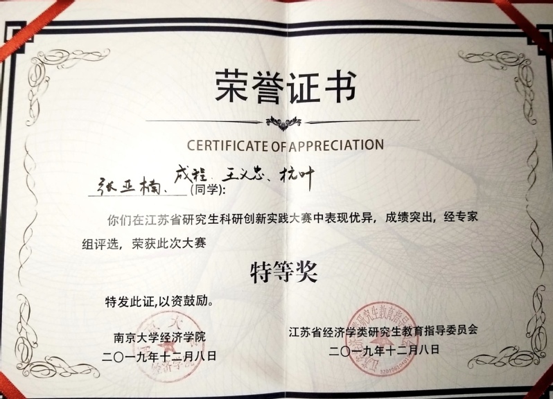 2019年江苏省研究生创新型经济发展创新实践大赛由江苏省经济学类研究生教育指导委员会主办,南京大学经济体育投注平台