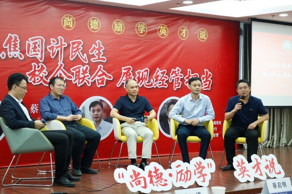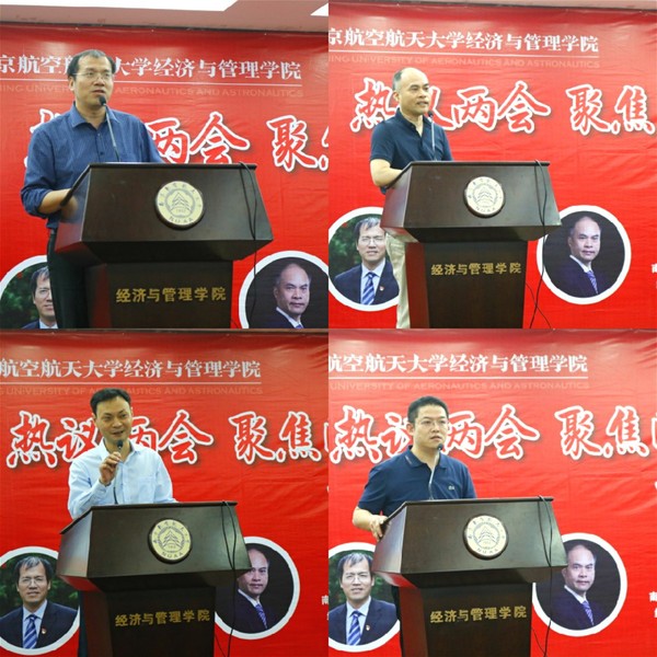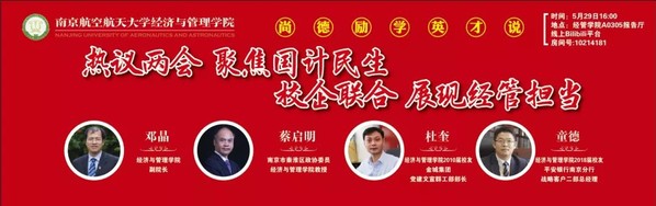 5月29日下午,体育投注平台 于A0305 报告厅举行“尚德·励学”英才说校友师生共话两会活动。体育投注平台 副院长邓晶,南京市秦淮区政协委员、管理科学与工程系教授蔡启明,体育投注平台 2010届校友、金城集团党建文宣群工部部长杜奎,体育投注平台 2018届校友、平安银行南京分行战略客户二部总经理童德,共同围绕“热议两会,聚焦国计民生;校企联合,展现体育投注平台 担当”主题与体育投注平台 师生展开交流讨论。