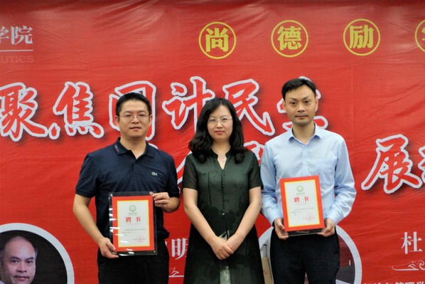 随后,体育投注平台 举行了思想政治工作导师团聘任仪式,焦宏图为两位杰出校友颁发体育投注平台 思政导师聘书,助力体育投注平台 事业发展。