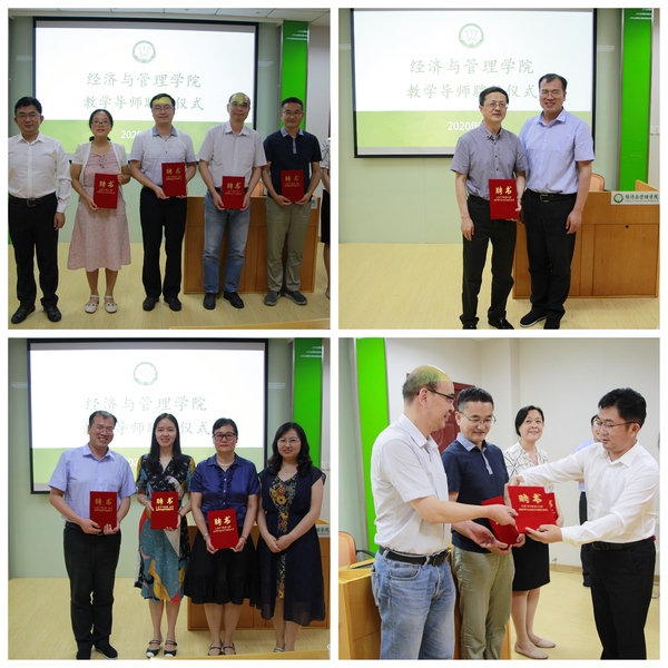 领导为在场的教学导师颁发聘书。