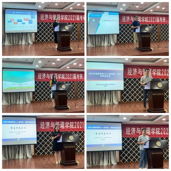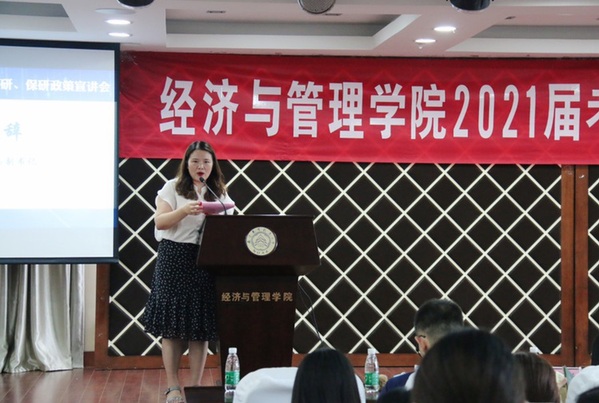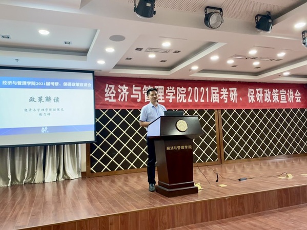 为了帮助2021届毕业生了解体育投注平台 研究生招生政策,合理规划考研、保研目标,提升体育投注平台 生源质量,8月27日,体育投注平台 在A0305报告厅开展2021届考研、保研政策宣讲会。体育投注平台 副院长邓晶、谢乃明,党委副书记涂志宏,管工系系主任马静、副主任虞先玉,工商系副主任刘文龙,经济系副主任查冬兰,辅导员及百余名2017级学生参加了本次活动。