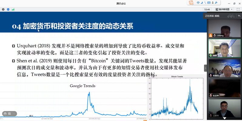 在学术交流中,熊熊首先回顾了区块链的内涵和历史,对于国内外区块链金融文献概况进行了梳理,并分别对区块链在加密货币领域研究进展和区块链在其他金融领域研究进展给出了总结分析。