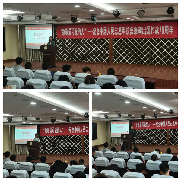 10月23日上午10时,体育投注平台 2020级团总支“致敬最可爱的人”——纪念中国人民志愿军抗美援朝出国作战70周年素养公开课于A0305顺利举办。活动会场内座无虚席,气氛庄严。