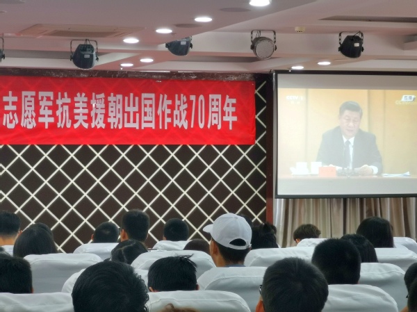 活动伊始,全体与会成员聆听学习了习总书记在纪念中国人民志愿军抗美援朝出国作战70周年大会上的讲话。