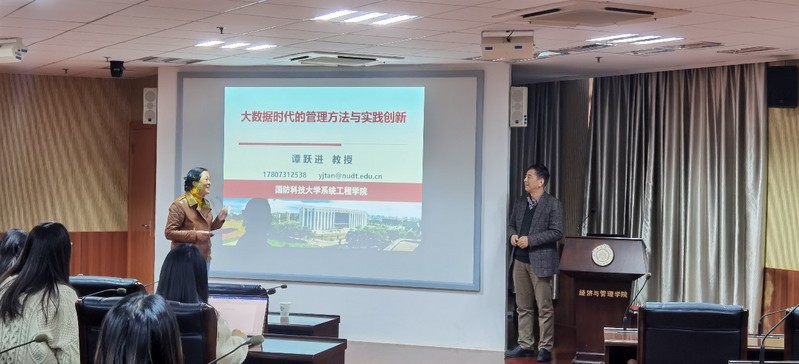 11月25日下午,国防科技大学教授谭跃进受体育投注平台 智能决策与风险分析研究所邀请,在体育投注平台 将军路校区体育投注平台 辅楼A0405作了题为“大数据时代的管理方法与实践创新”的讲座。体育投注平台 教授徐海燕等教师及部分硕、博研究生现场聆听了谭跃进的报告分享,本次学术报告由徐海燕主持。